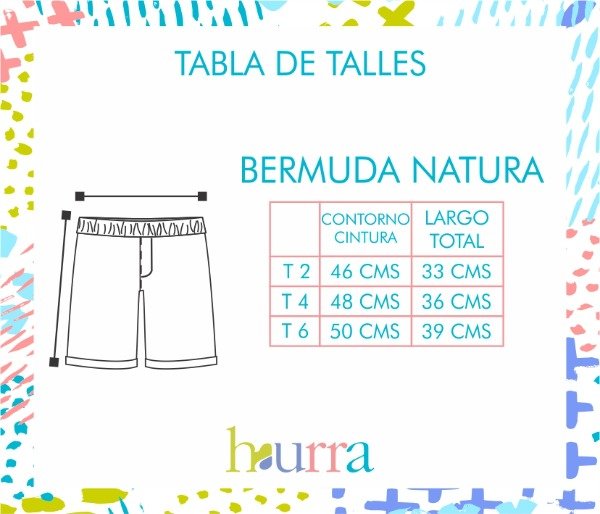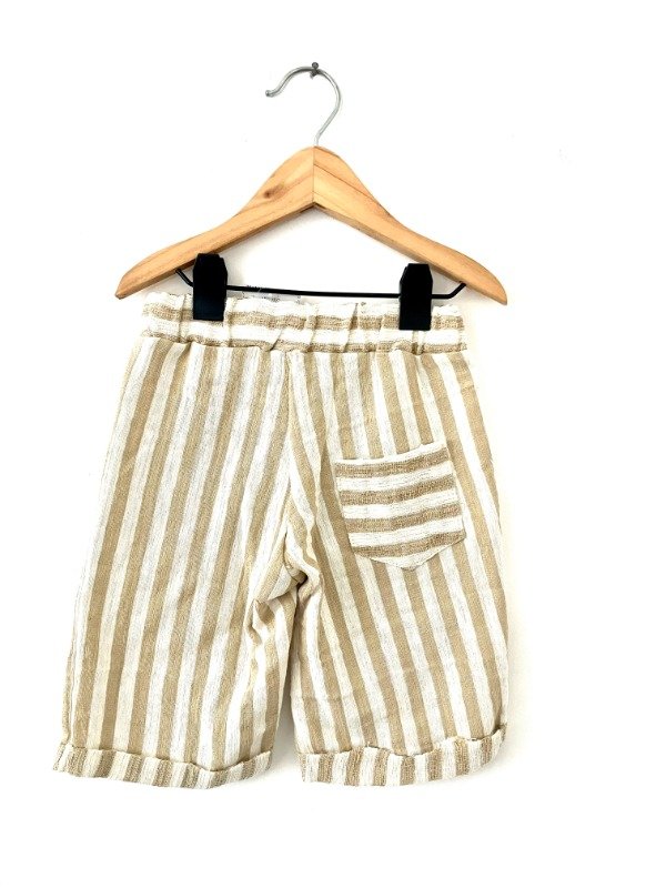 Bermuda realizada en Bambú plano - Rayas blanco y natural, Cintura con elastico