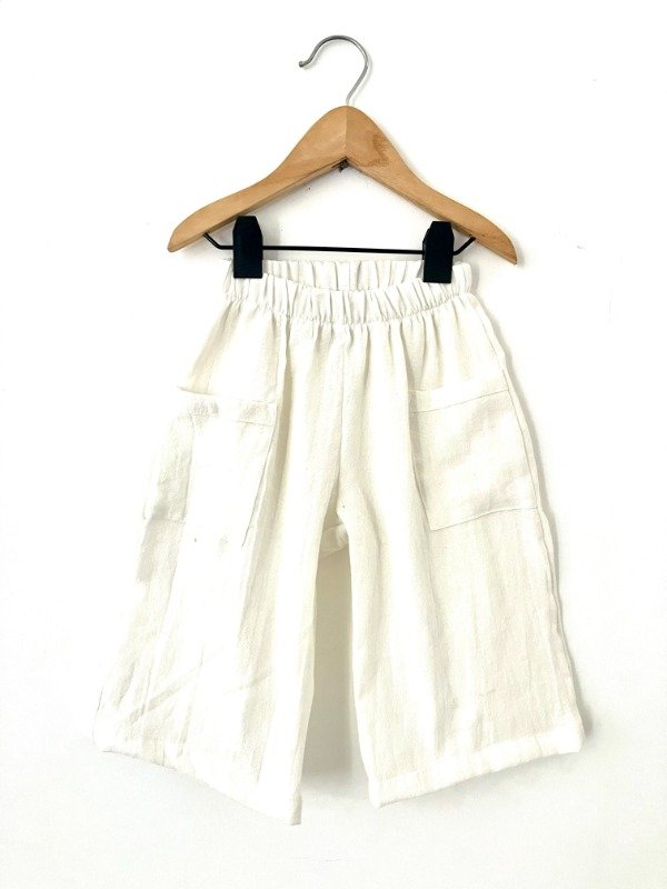 Pantalon corte crop (largo debajo de la rodilla) con bolsillos laterales en Gasa de Algodón