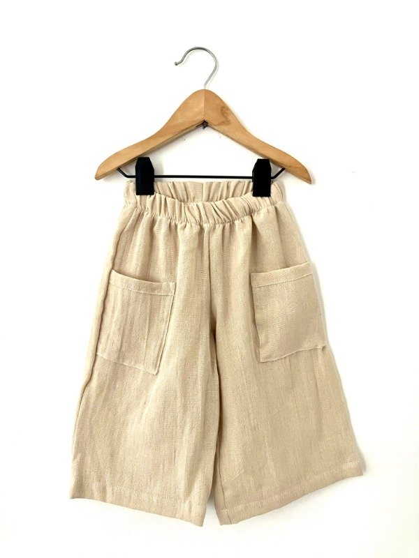 Pantalon corte crop (largo debajo de la rodilla) con bolsillos laterales en Gasa de Algodón