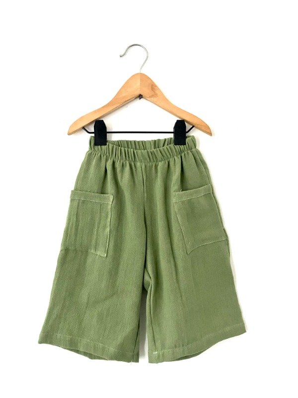 Pantalon corte crop (largo debajo de la rodilla) con bolsillos laterales en Gasa de Algodón