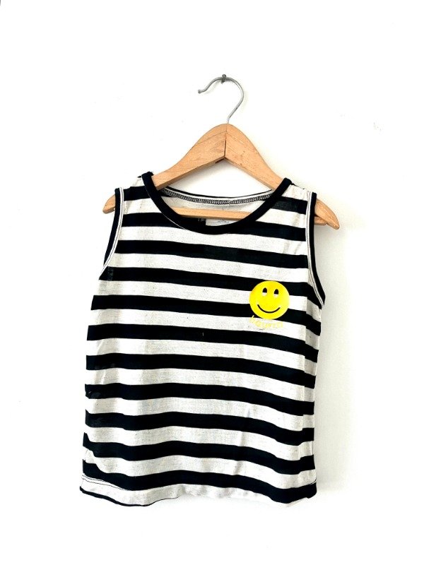 Remerón en jersey de algodón liviano rayado. Detalle de estampa amarilla
